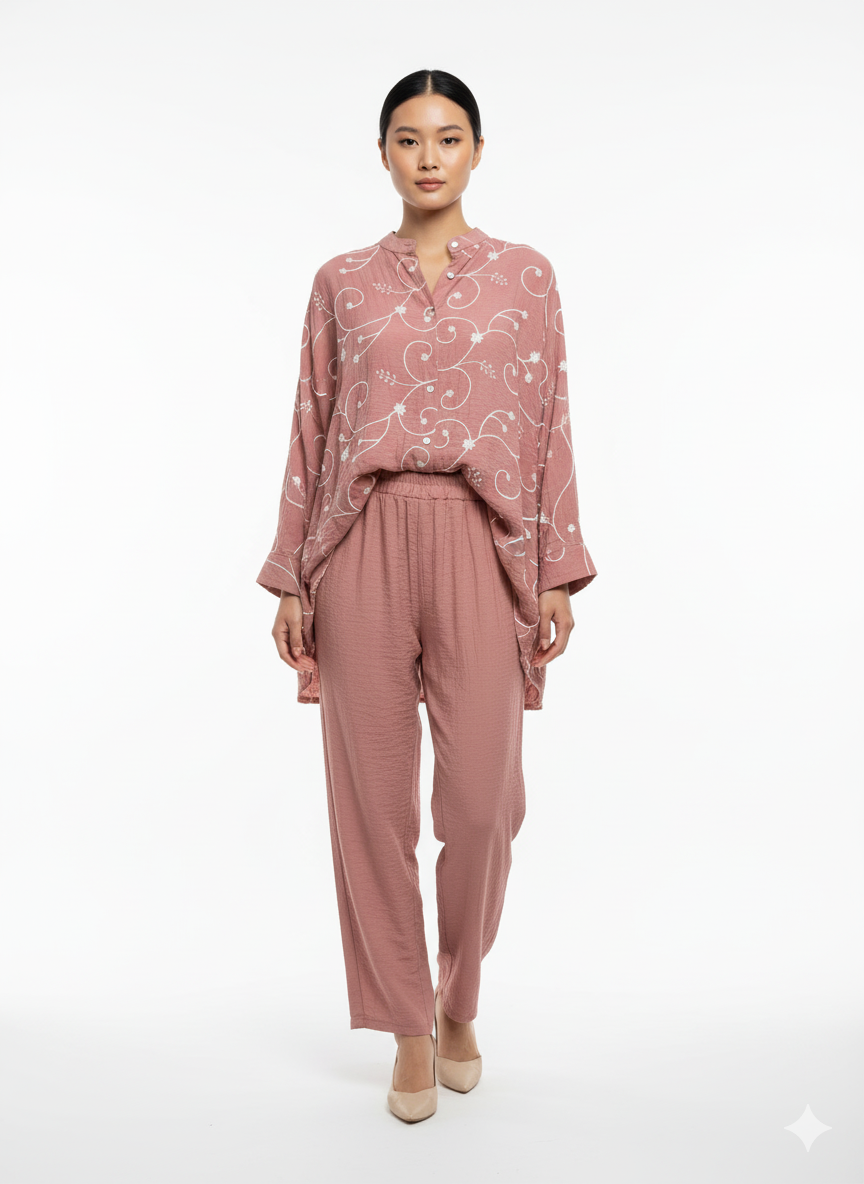 Fs44 1061 Women's Floral Scrollwork Embroidered Two-Piece Set